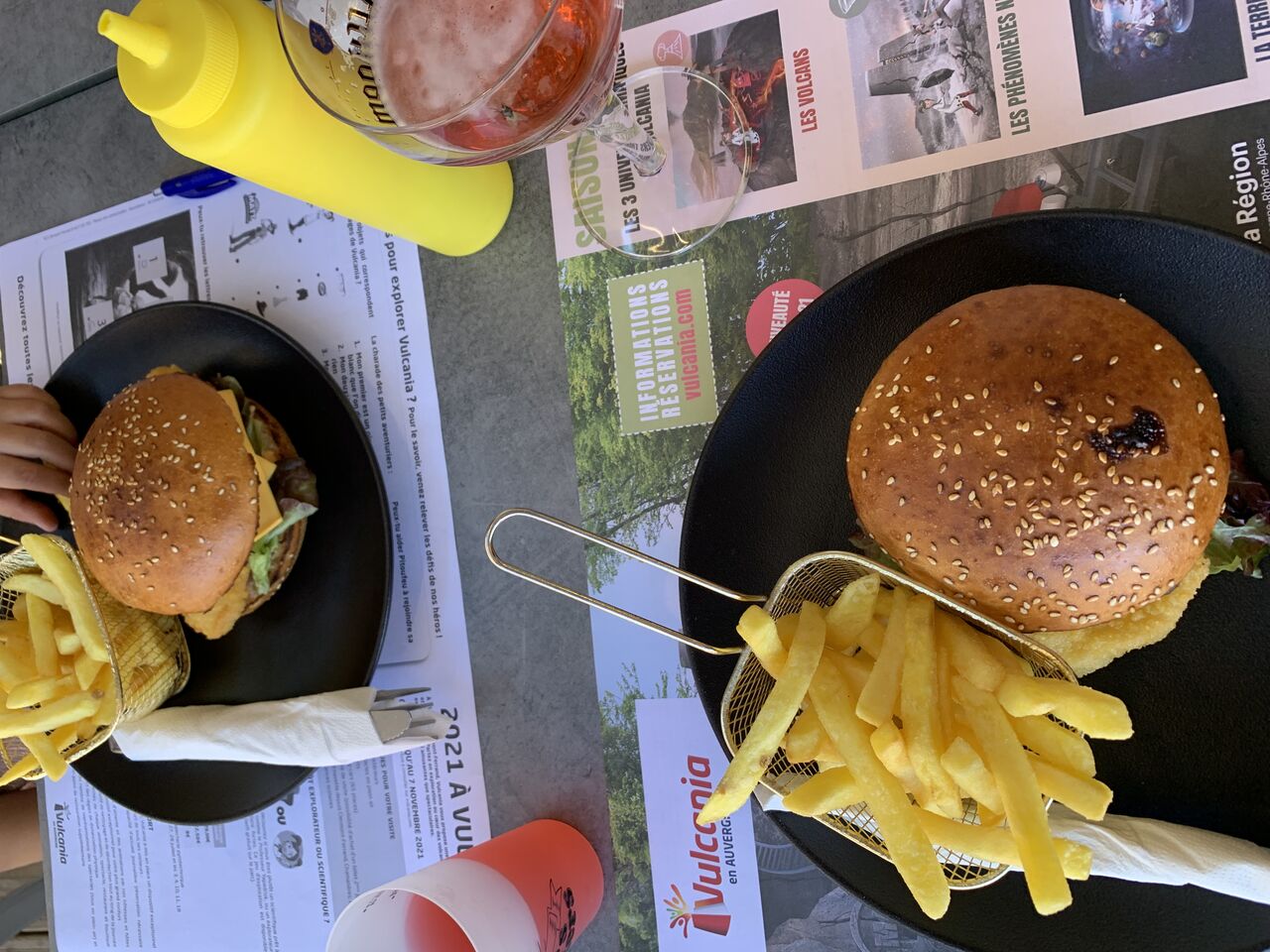 Nous vous proposons un moment sympa entre amis ou en famille pour déguster une variété de burgers, tacos, kebab, américains, paninis, sandwichs froids et salade sur notre terrasse avec vue sur le Château Féodal de Murol.
